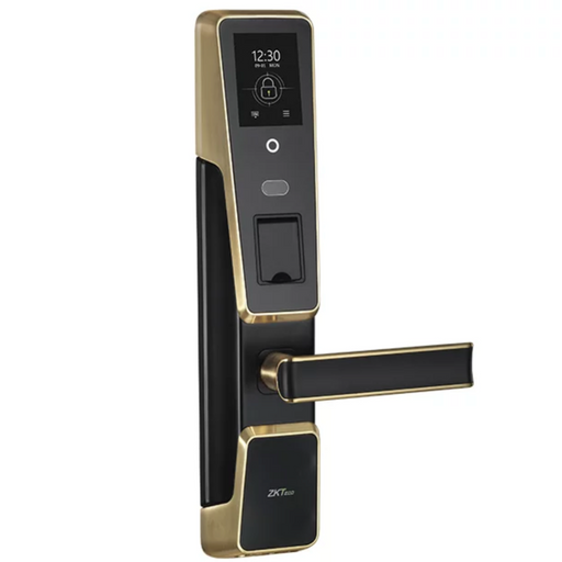 ZKTecoDescripción generalCerradura inteligente biométrica con pestillo europeo de cinco cerrojos, que bloquea automáticamente al cerrar, ideal para hogar...