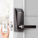 Cerradura tipo lever (manija) con teclado táctil y lector RFID.